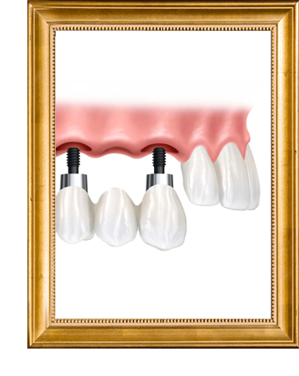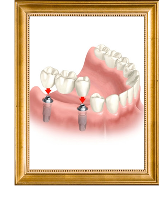 É uma prótese fixa instalada sobre pinos de titânio para substituir um número de dentes pequenos, podendo ser até mesmo de um único dente.
