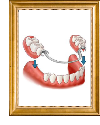 É uma armação metálica com dentes artificiais. Embora removível, ela é seguramente encaixada à boca por meio de grampos que enlaçam os dentes naturais adjacentes e, ainda, por meio do apoio da gengiva.